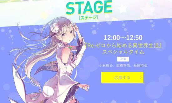 《Re:从零开始的异世界生活》的活动由486的声优小林裕介、爱蜜莉雅的声优高桥李依、怠惰司教的声优松冈祯丞三人主持。