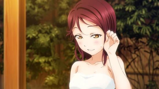 第七话的主人公是樱内梨子(CV:逢田梨香子),本次的主题是日本极具代表色彩的温泉。有温泉自然会有福利,这一话樱内梨子裹着浴巾泡澡的插画也十分诱惑。梨子表示Aqours的成员在练习之后就会来到千歌家来泡温泉。按照惯例,梨子也像其他成员一样邀请了你(观众)一起来做本次的活动——泡温泉。