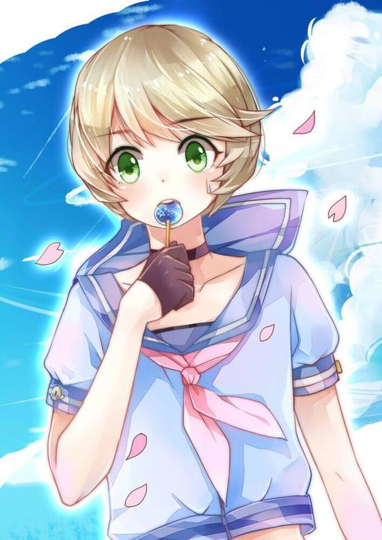 最后一张是“小米”——米斯丁,只见他满脸天真无邪的笑容,怀抱蜜瓜牛奶味棒棒糖,可爱正太的杀伤力瞬间满赛!