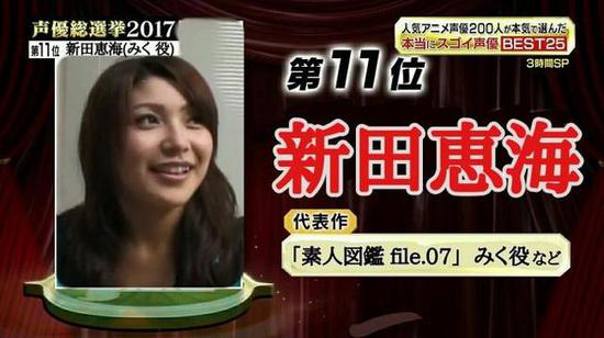还有更黑的日宅甚至利用1月9日朝日电视台播出的《声优总选举2017》节目的截图制作了“新田惠海版”,代表作更是赫然写着《素人图鉴file.07》。