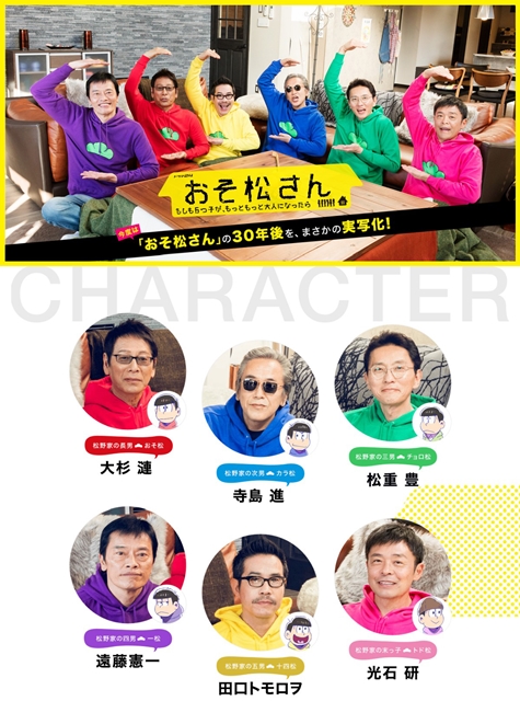 天气转暖,2017年冬季剧集正在陆续完结,广受好评的日剧《Byplayer:如果这6名配角共同生活的话》也即将迎来最终话,近日,剧中的六位萌叔玩儿起了cosplay,统统换上了阿松六兄弟的经典帽衫,让人不得不感慨——叔儿!你们真会玩儿!