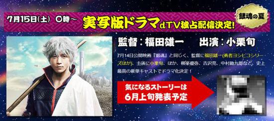 根据官方发布的信息,真人电视剧版《银魂》将于7月15日0点在日本视频网站dTV独家播出。该电视剧由真人电影版《银魂》原班人马打造,由福田雄一执导,小栗旬、桥本环奈、柳乐优弥、吉泽亮、中村勘九郎等主演。电视剧的故事将于6月上旬发表,腾讯动漫也将持续关注这部电视剧的后续消息。