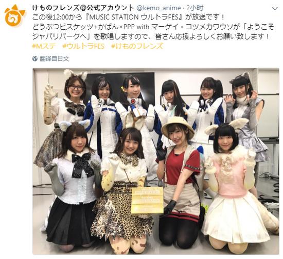电视动画《兽娘动物园》是以“动物”为原作,由吉崎观音设计的角色与世界观构成IP,涵盖动画、游戏、漫画的跨媒体企划中的一部分。这部一月新番播出后,受到了许多网友的喜爱。这段时间以来,岛国媒体报道了不少与《兽娘动物园》相关的新闻。最近小鞄酱的声优内田彩也与大家一起登上了“MUSIC STATION ULTRA FES”的舞台,虽然在几天前就已经在《兽娘动物园》的LIVE上登场,不过上电视节目还是首次。我们就一起来看看吧。
