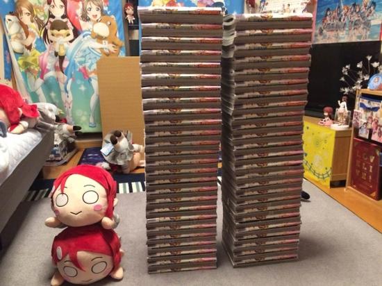 《LoveLive!Sunshine!!》第2季动画目前正在热播,来自动画的偶像团体Aqours的话题度也居高不下。在昨天(11月16日)发售的青年漫画杂志《周刊YOUNG JUMP》中,水团成员逢田梨香子登上了封面和卷头。一位狂热粉丝为偶像疯狂购买了上百本杂志,引起网友的热议。