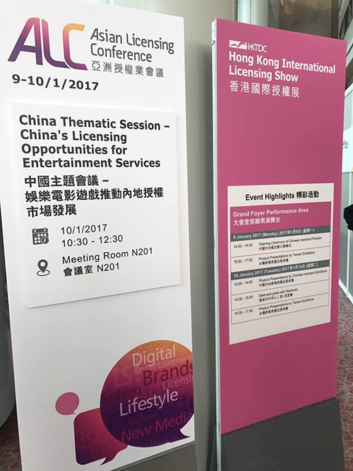 2017年1月9日-11日,第15届香港国际授权展在香港湾仔博览道一号香港会议展览中心举办,此次展览主要类别包括动漫、艺术与设计、名人与娱乐、专上学府、企业品牌、时尚服饰、体育、餐饮等。