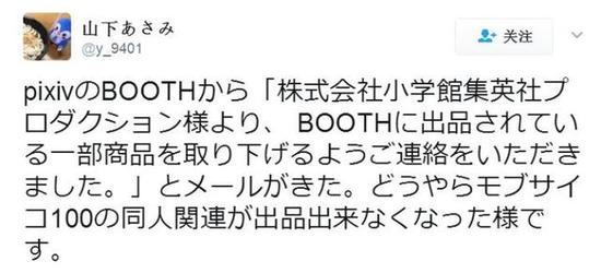 这位本子画师说:从P站的BOOTH那听说“株式会社小学馆集英社的厂商大人警告BOOTH的一部分商品需要下架”。看来《灵能百分百》的同人相关作品也没有办法上架了的样子。