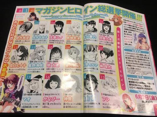 作为日本发行量第二大的漫画杂志,旗下的《周刊少年MAGAZINE》也算是鼎鼎有名的杂志了,近日,这本杂志举办了女主角总选举,但很多日宅表示参选的女主角一个都不认识。真丢人,你们退宅吧。