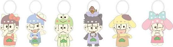 六个“阿松”与三丽鸥角色在一起的合作款钥匙圈的售价为580日元(约合35元人民币)。