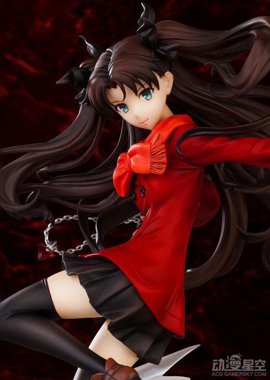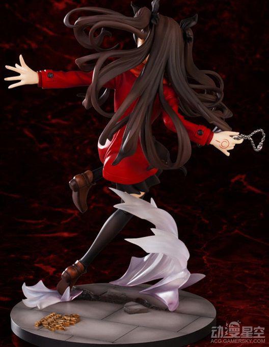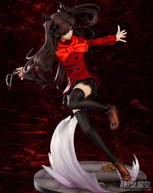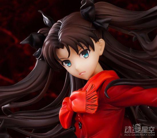 本款远坂凛手办再现了她在“UBW篇”中的设定,造型方面采用了大家最为熟悉的红色上衣、黑色短裙和丝袜组合,视觉效果较强。配合凛抛洒宝石的战斗动作、飘舞的双马尾和底座上搭载的特效配件,剧情中激烈战斗的一幕在这里得到了大幅还原。